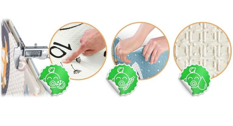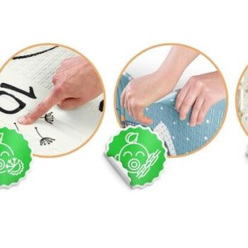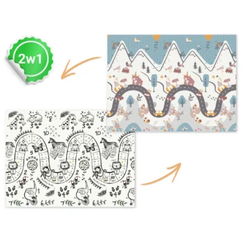 37 Ta edinstvena velika zložljiva igralna podloga dimenzij 200 x 180 cm ima veliko praktičnih uporab. Vašemu otroku bo nudila udobje med igro in učenjem plazenja! 2v1: podloga je dvostranska. Namenjena otrokom vseh starosti – zasnovana za podporo razvoju malčkov in predšolskih otrok. 48 Hitro in enostavno se zloži, tako da jo lahko vzamete s seboj kamor koli! Podlogo je mogoče zložiti večkrat in se ne bo poškodovala. Posebna tehnologija izdelave podaljša njeno življenjsko dobo. 36