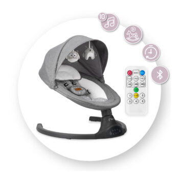 - Glasba in Bluetooth: Predvaja 10 različnih melodij in omogoča povezavo z vašo napravo prek Bluetootha za predvajanje najljubše glasbe vašega dojenčka.