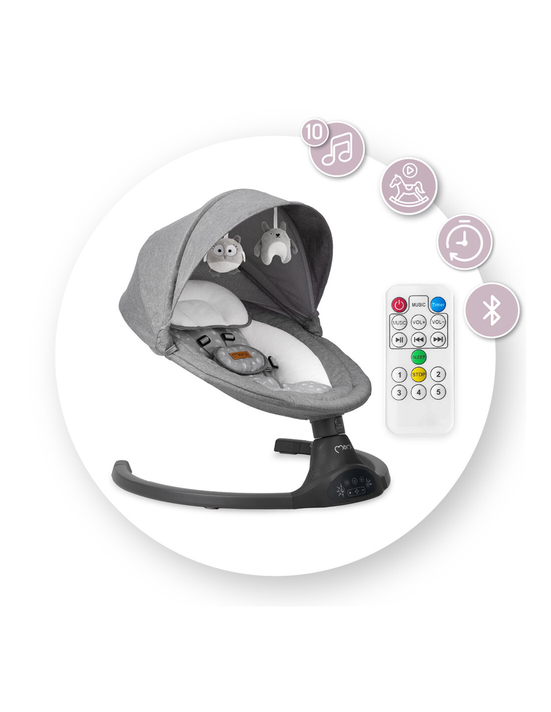 Električna gugalnica MoMi KENANI ONYX je popolna mešanica stila, udobja in funkcionalnosti, ki vašemu dojenčku zagotavlja varen in udoben prostor za počitek in igro. Z nastavljivo hitrostjo guganja, predvajanjem glasbe in priročnim daljinskim upravljalnikom ta gugalnica olajša življenje vsakemu staršu. Za podrobnejši pregled funkcij električne gugalnice MoMi KENANI ONYX si oglejte naslednji videoposnetek: