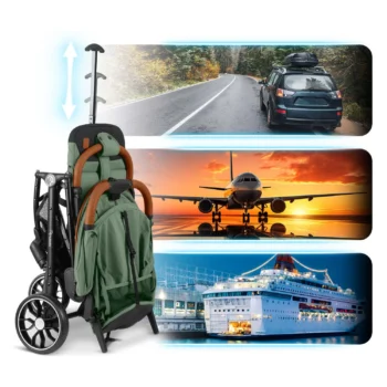Izberite naš voziček in uživajte v vsakem trenutku, preživetem na prostem z vašim otrokom. Lahko ga vzamete s seboj na potovanje ali celo na letalo.
