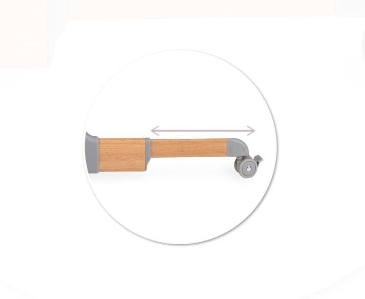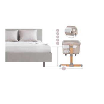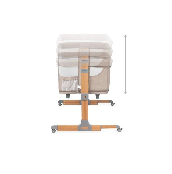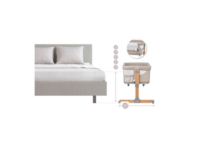• Nastavljiva višina: Pet višinskih stopenj omogoča, da višino otroške posteljice prilagodite višini starševske postelje, kar zagotavlja varnost in udobje.