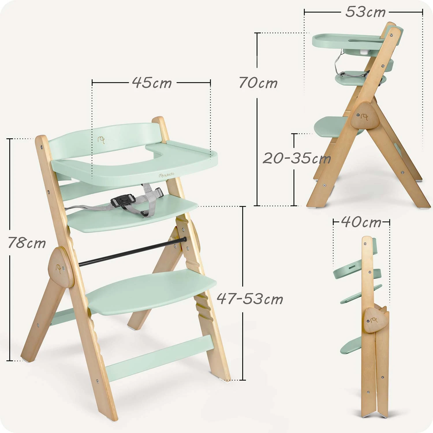 Otroška oprema, Stolčki za hranjenjeOtroški stolček za hranjenje Nukido – Tilo mint