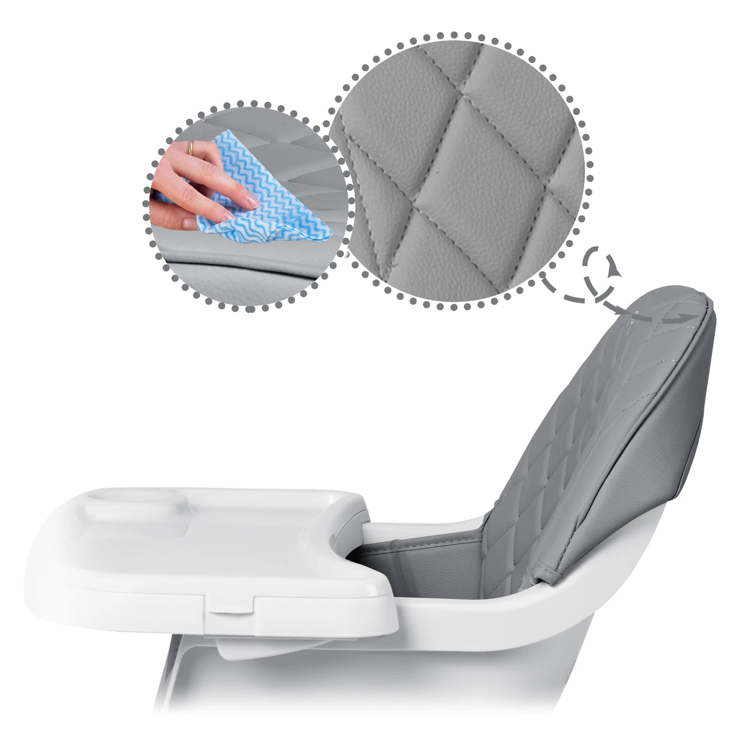 Snemljiva prevleka za pladenj močno olajša čiščenje. Mehka in udobna prevleka je izdelana iz materiala, ki ne vpija umazanije. ▶ Obrišite s krpo in stol je spet čist !