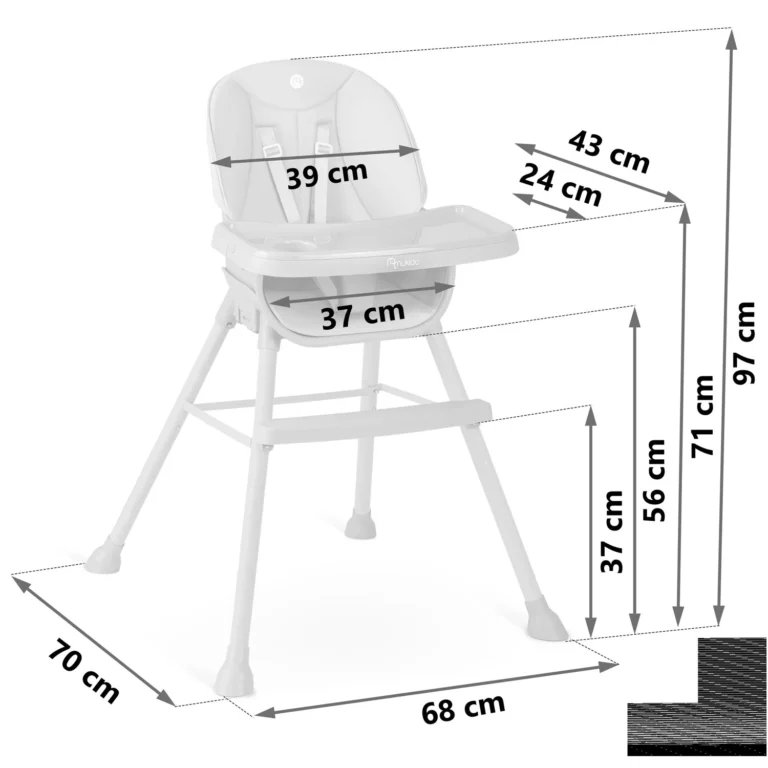 Otroški stolček, nastavljiv sedež, pladenj 3 v 1 Širina izdelka: 68 cm
