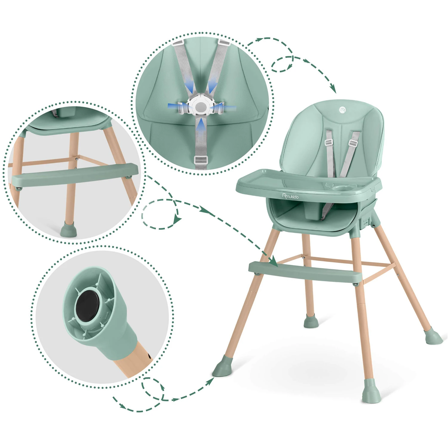 Otroški stolček za hranjenje Nukido – Tilo mint