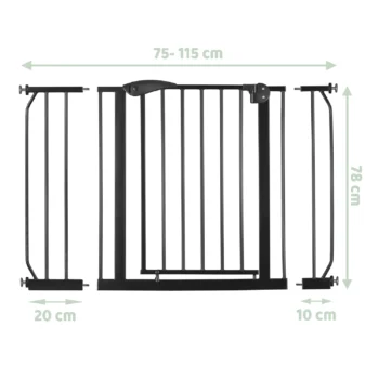Zahvaljujoč modularni strukturi in prilagodljivemu sistemu montaže je mogoče vrata prilagoditi odprtinam širine od 75 cm do 115 cm. Ni treba iskati posebej naročene pregrade. Uporabite le elemente, ki so priloženi kompletu.