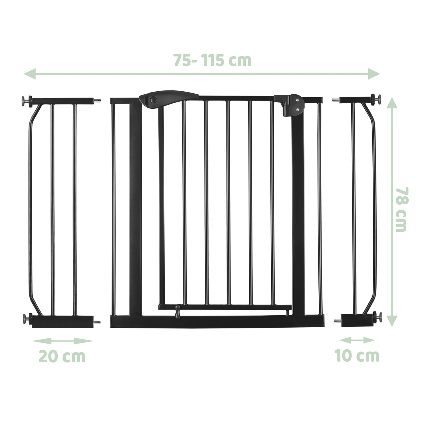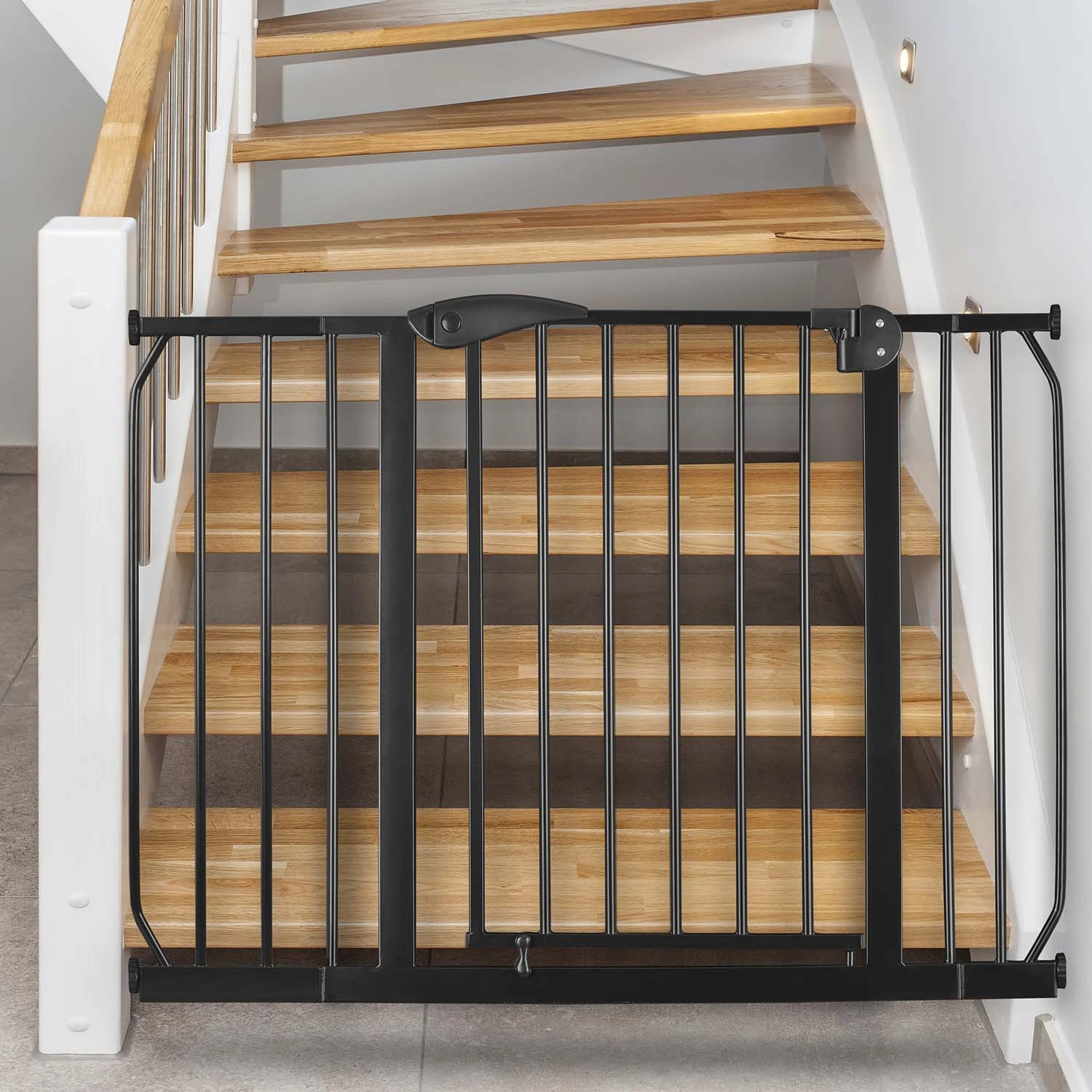 Varnostna vrata Nukido so nameščena z metodo opornikov, kar odpravlja potrebo po vrtanju lukenj, zato stene in podboji vrat ostanejo nedotaknjeni. Ta gol je izdelan iz črnega jekla, zato se harmonično zlije z oblikovanjem različnih notranjosti. ⭐️ Nastavljiva širina omogoča vgradnjo v vrata in prehode širine od 75 do 115 cm.