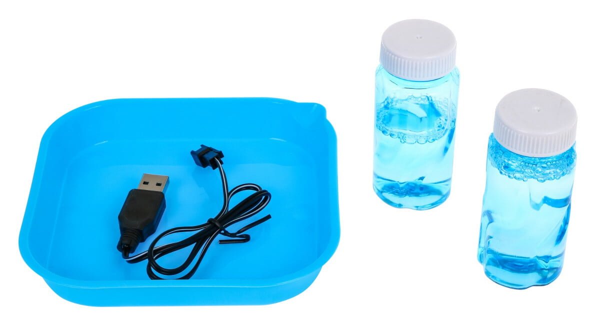 – stroj za mehurčke, – 2 x tekočina za milne mehurčke, – 3,7V baterija, – nalepke, – vrvica, – USB polnilni kabel. |