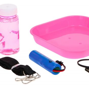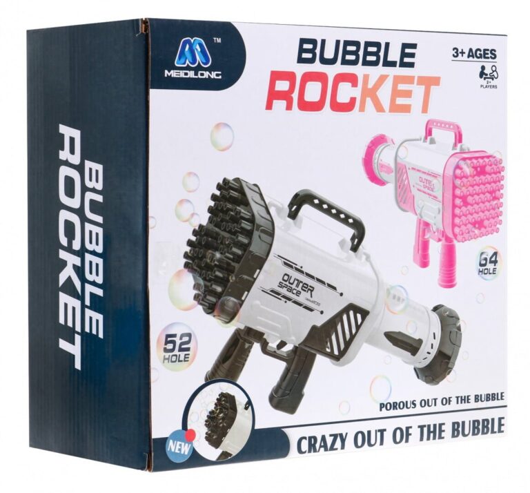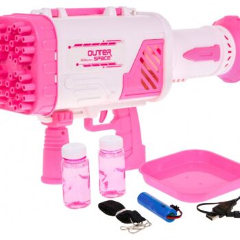 Igrača, namenjena otrokom, starejšim od 3 let. Glava stroja ima 52 lukenj, skozi katere prihajajo ven mehurčki, zahvaljujoč funkciji osvetlitve pa so mehurčki videti fantastično. Stroj za mehurčke se lahko uporablja tudi kot majhen prenosni ventilator. Igračo napajajo baterije z zmogljivostjo 2200 mAh 3,7 V (priložene). Upravljanje igrače je zelo preprosto, le nalijte nekaj tekočine za mehurčke v stojalo, ki je priloženo kompletu, in vanj potopite glavo stroja. Nato pritisnite sprožilec stroja, iz katerega bodo prihajali ven mehurčki čudovitih barv. Funkcije nastavitev – stroj za mehurčke, – prenosni ventilator. |