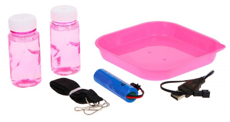 – stroj za mehurčke, – 2 x tekočina za milne mehurčke, – 3,7V baterija, – nalepke, – vrvica, – USB-kabel za polnjenje. |