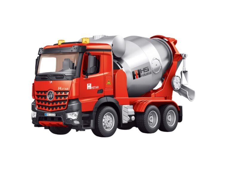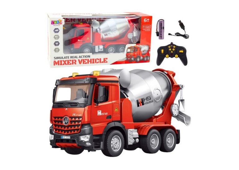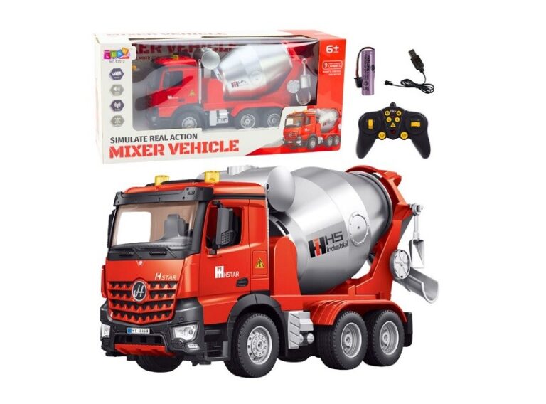 Daljinsko voden mešalnik betona je idealna igrača za ljubitelje gradbenih vozil, ki zagotavlja realistično in dinamično zabavo. Zahvaljujoč 9-kanalnemu krmilnemu sistemu lahko otrok vozi vozilo naprej, nazaj, obrača in upravlja mešalni boben z vrtenjem v dve smeri. To omogoča simulacijo resničnega delovanja mešalnika betona, kot na pravem gradbišču. Model je izdelan iz visokokakovostnih materialov, kar zagotavlja njegovo vzdržljivost in odpornost na poškodbe. Trdna konstrukcija in podrobne podrobnosti dajejo vozilu videz pravega mešalnika betona. Velika gumijasta kolesa zagotavljajo odličen oprijem na površini, kar omogoča vožnjo po različnih površinah – tako v zaprtih prostorih kot na prostem. Daljinski upravljalnik s frekvenco 2,4 GHz zagotavlja natančen nadzor brez motenj, tako da lahko hkrati uporabljate več RC vozil. Mešalnik betona napaja 3,7 V litijeva baterija, ki se polni prek USB-ja, kar odpravlja potrebo po uporabi baterij za enkratno uporabo in zagotavlja daljšo zabavo. SPECIFIKACIJE: