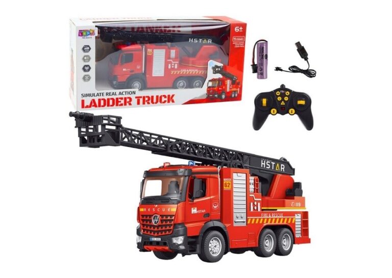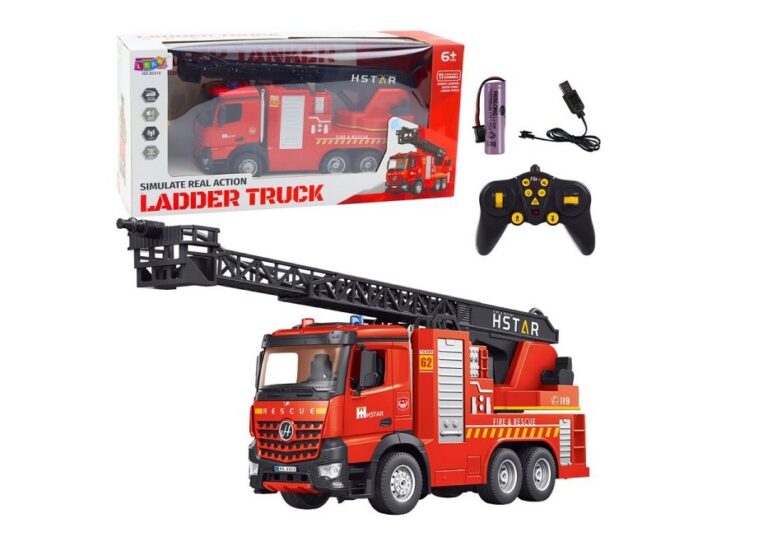 Gasilsko vozilo na daljinsko upravljanje z raztegljivo lestvijo in realističnim učinkom vodnega pršenja je odlična igrača za otroke, ki sanjajo, da bi postali gasilci. Vozilo je zasnovano s pozornostjo do detajlov, zaradi česar zvesto reproducira prava gasilska vozila. Daljinski upravljalnik omogoča popoln nadzor nad vozilom, saj omogoča vožnjo v vse smeri, dvigovanje in vrtenje lestve ter aktiviranje učinka vodnega pršenja. Ena najbolj edinstvenih funkcij te igrače je učinek pravega gašenja požara, ki deluje tako, da se poseben rezervoar napolni z vodo. Ko je aktivirana, iz gasilske šobe priteče vodna meglica, ki posnema pravi curek za gašenje požara! Igrača ima tudi svetlobne in zvočne učinke, kar še bolj poudarja realizem vozila in zabavo naredi še bolj razburljivo. Trdna konstrukcija in visokokakovostni materiali zagotavljajo vzdržljivost in varnost uporabe. Vozilo napaja baterija USB, kar odpravlja potrebo po pogosti menjavi baterij. Zaradi svoje velike velikosti, realističnih funkcij in učinka vodnega pršenja je to gasilsko vozilo popolna igrača za male navdušence nad reševalnimi službami. SPECIFIKACIJA: