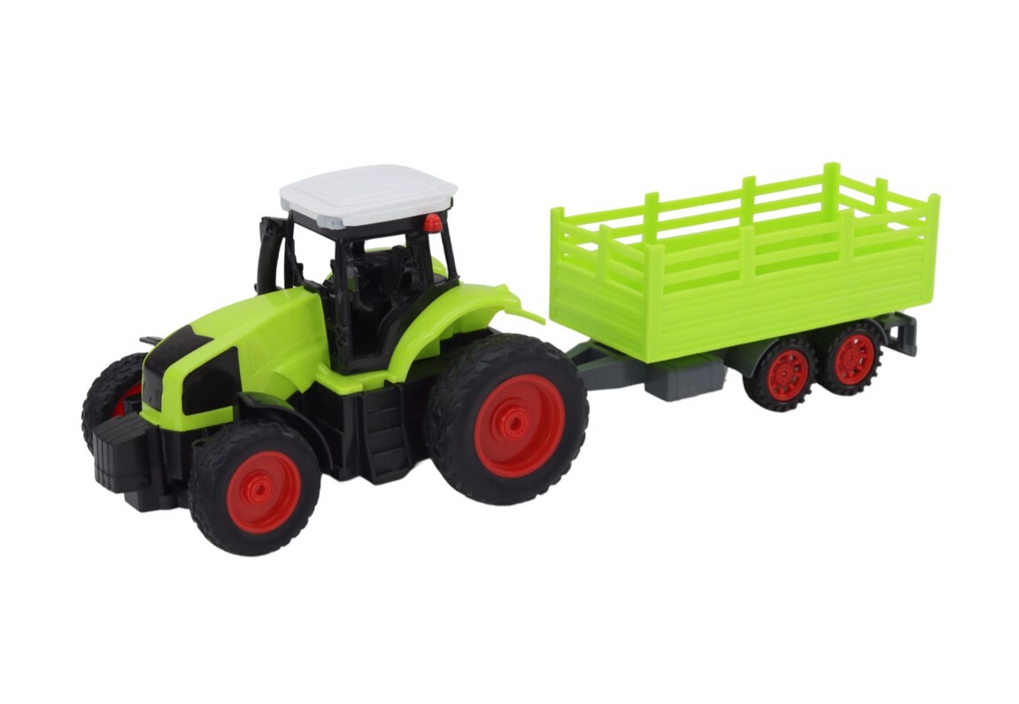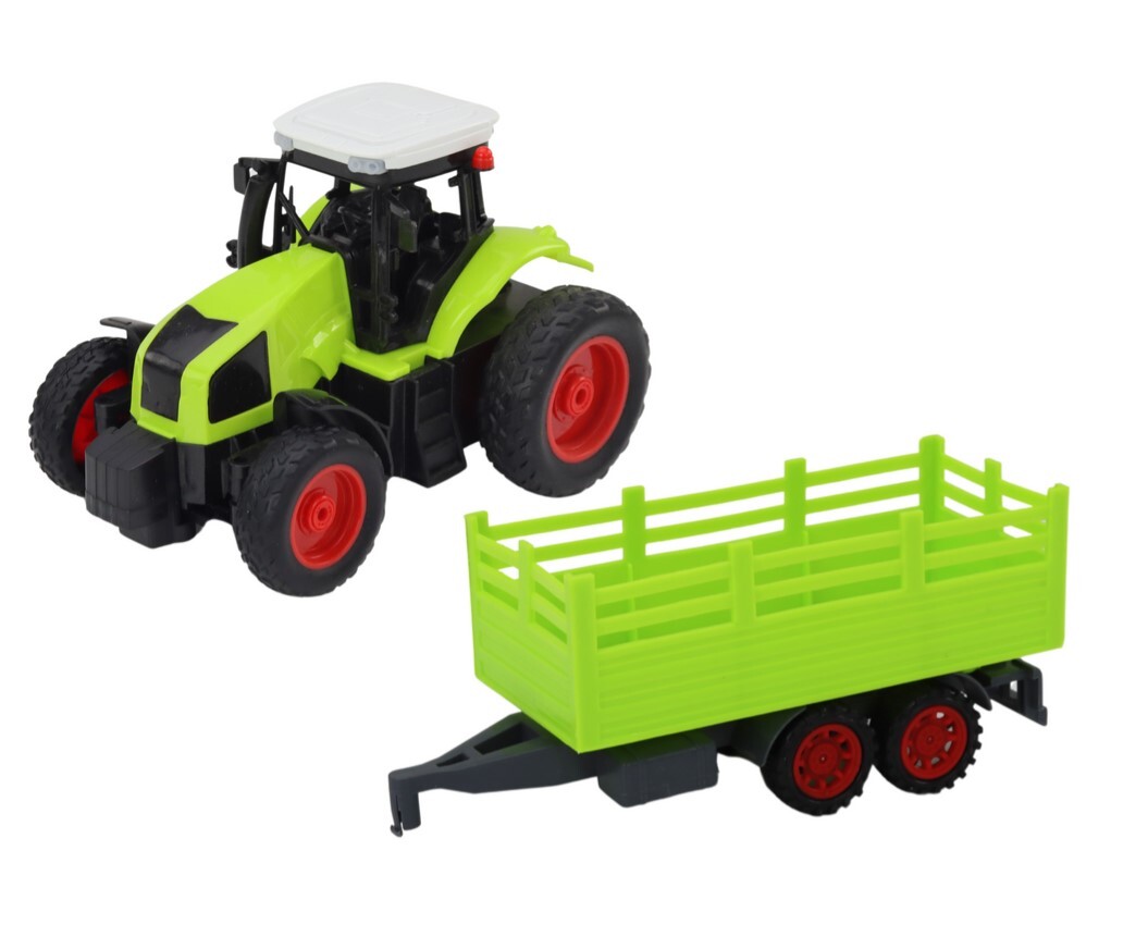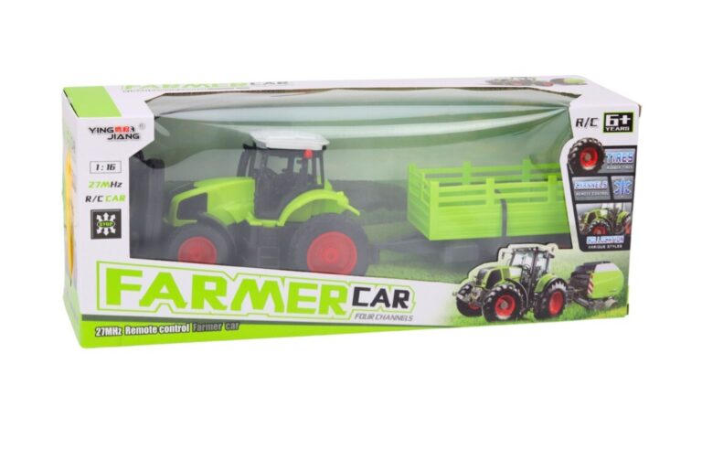 RC traktor na daljinsko upravljanje s prikolico 1:16 zelene barve Ta traktor in prikolica na daljinsko upravljanje v merilu 1:16 je popolna igrača za mlade ljubitelje kmetijstva in mehanizacije. Traktor in prikolica navdušujeta s svojim realističnim videzom, izdelana sta v živo zelenih barvah in natančno detajlirana, zaradi česar sta kot prava. Traktor je opremljen z gumijastimi kolesi, kar zagotavlja stabilnost in omogoča premikanje po različnih površinah, od ravnega do neravnega terena. Zahvaljujoč daljinskemu upravljalniku lahko otroci varno nadzorujejo gibanje traktorja in uživajo v dinamični igri. Dodatna atrakcija je snemljiva prikolica, ki ponuja več možnosti igre. Otroci se lahko sami odločijo, ali bodo traktor vozili s prikolico ali brez nje, kar spodbuja njihovo ustvarjalnost in pomaga razvijati načrtovalske in organizacijske sposobnosti. Ta igrača ne ponuja le zabave, temveč tudi podpira razvoj mladih uporabnikov, saj jih uči motorične koordinacije, načrtovalskih in odločevalskih veščin ter razvija njihovo domišljijo s simulacijo različnih situacij, povezanih s kmetijskimi ali gradbenimi deli. Popolna za igro v zaprtih prostorih in na prostem! Traktor napaja 3,7 V baterija, ki je priložena kompletu. Polnilec je priložen bateriji. Daljinski upravljalnik napajata 2 bateriji AA 1,5 V, ki nista vključeni v komplet. Dimenzije traktorja s prikolico: 38 cm x 12,5 cm x 11,5 cm. Dimenzije paketa: 45 cm x 18,5 cm x 13 cm. CE certifikat in skladnost s standardom EN71 . Primerno za otroke, starejše od 6 let.