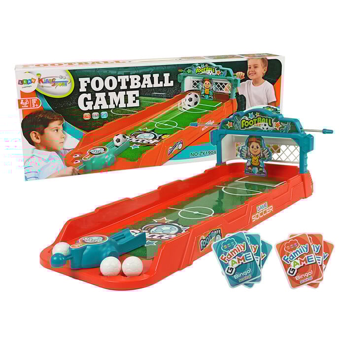 Arkadna igra Namizni nogomet z izstrelkom Goal Card Football je znana in priljubljena oblika dejavnosti in zabave, ki jo prepoznajo vsi. Pri igralcih vseh starosti vzbuja navdušenje in tekmovanje. Čas je, da začnete igrati doma. Namizna različica bo zagotovila obilo zabave in razburjenja! Razvijala bo reflekse in merjenje ter je odlična za preživljanje prostega časa z družino. Ta mini igra je zelo enostavna za igranje. En igralec z izstrelkom strelja na gol, drugi pa igra vlogo vratarja in preprečuje, da bi kdo dosegel gol. Po vsakem golu igralec prejme kartico s točko. Zmaga tisti, ki prvi doseže vse tri! To tekmovanje bo razburljivo! Sestavine kompleta: – 3 plastične žogice – kartice za točkovanje – namizni nogomet – mehanizem za met žogice Dimenzije mini nogometne žogice: 62 cm x 35 cm x 18 cm Dimenzije embalaže: 60,5 cm x 24 cm x 8 cm Ta igra je namenjena 1-2 igralcema. Primerna je za otroke, starejše od … 3 leta. Ustreza standardu EN71 in ima certifikat CE.