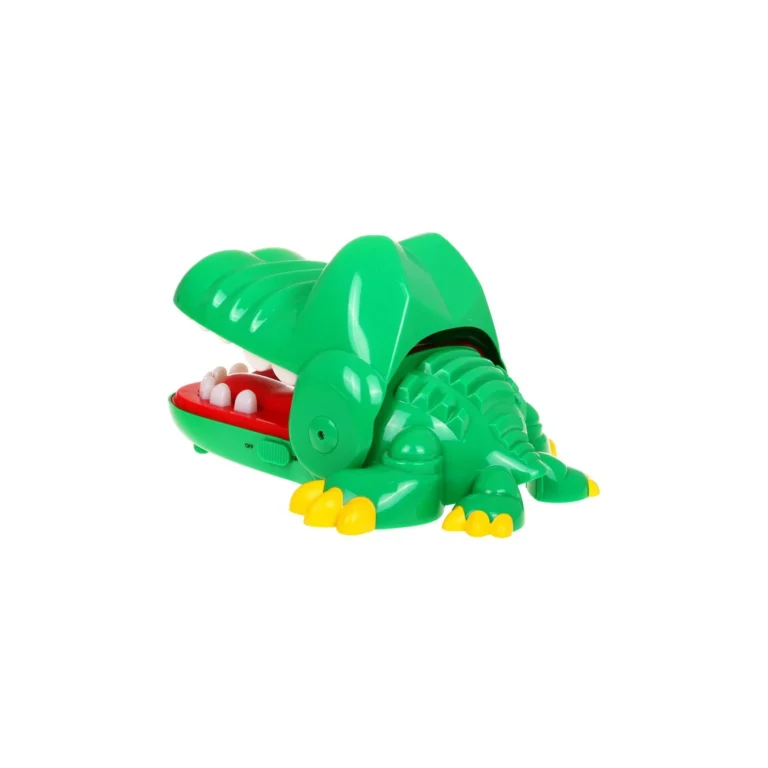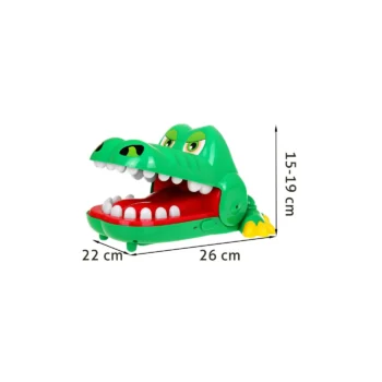 | Krokodil pogumno odpre usta in razkrije vrsto lepih, ravnih zob. Žal te eden od njih boli. To storiš tako, da s prstom pritisneš na kateri koli zob posebej (če je več igralcev, to storiš enega za drugim). 3 VARIACIJE IGRE: 1. ZOBNA PASTA – rdeč gumb – začne prvo različico igre. – Po pritisku se začne zabava: pritiskaj zob za zobom … če zadeneš zob, ki te boli, te bo krokodil ugriznil! Izgubiš. 2. REFLEKSNA IGRA: – pritisni na zob, ki oddaja oranžno svetlobo, – hitro pritisni na zobe, ki se prižgejo drug za drugim; hitrost streljanja se bo povečala, – če se hkrati prižgeta dva zoba, poskusi čim hitreje pritisniti enega za drugim, – če trikrat napačno pritisneš, bo krokodil zaprl usta; izgubiš, igre je konec. – Po igri bo število zob, ki se prižgejo, tvoja raven refleksa. 3) SPOMIN: – pritisnite zelen žareči zob, – spomnite se žarečih zob, – ko krokodil vpraša “Kateri zob boli”, pritisnite zapomnjene zobe, – če je vaš odgovor pravilen, lahko poskusite znova, – število žarečih zob se bo povečalo, čas, ko bodo žareli, pa se bo skrajšal. – če odgovorite napačno, se bodo krokodilova usta zaprla in vas bo ugriznil v prst. | |