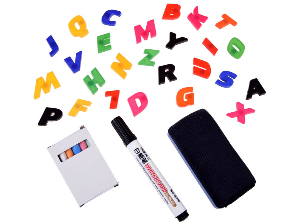 Tabla je v celoti izdelana iz lesa in ima: – črno površino za risanje s kredo – magnetno ravnilo za lepljenje črk, pisanje s suhobrisnim flomastrom – zvitek papirja, namenjen risanju, slikanju Komplet vsebuje: – leseno tablo – vgrajen abakus – zvitek papirja – črke – barvno kredo – suhobrisno flomastro – gobico Dimenzije polja: – 90 x 39 x 40 cm – Površina za pisanje 38 x 30 cm s kredo in markerjem – polico za pripomočke 33 x 28 cm Tabla je izdelana iz lesa, zaradi česar je trdna in funkcionalna. Na eni strani je magnetna tabla, na katero lahko rišete s suhobrisnim flomastrom ali lepite magnetne slike in črke. Druga stran je tabla s kredo, na katero bo otrok pisal s kredo. Prvo učenje pisanja črk, številk, reševanja preprostih matematičnih problemov, slikanja, risanja bo vašemu otroku omogočilo, da vadi roko, spomin in se zelo zabava. Ustvarjalni komplet bo poskrbel za veliko poučne zabave. Zahvaljujoč možnosti 3v1 bo otrok ves čas z nečim zaposlen. Igralna plošča je odlična za igranje pred prvo uro v šoli. S takim kompletom je veliko idej. Komplet je pakiran v zelo lepi, pisani škatli, idealni za darilo. Igrača je robustna in estetsko izdelana.
