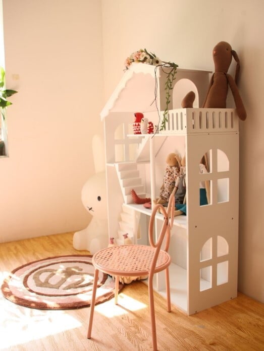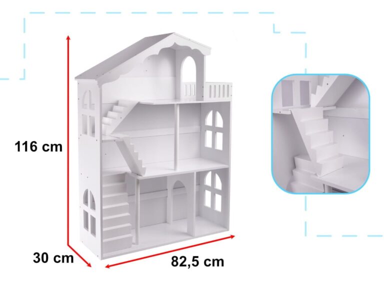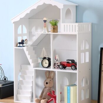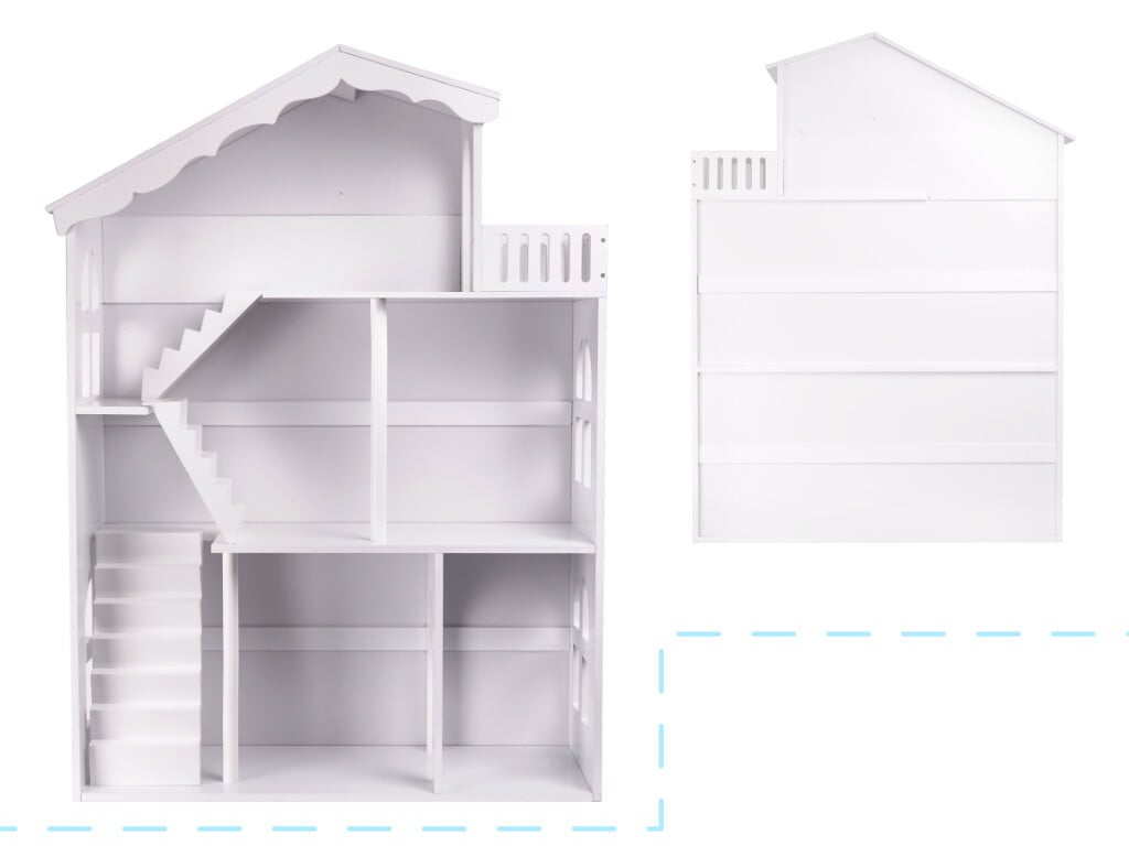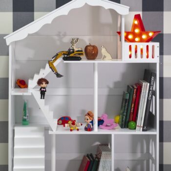 Otroška hišica za punčke in knjižna polica velikosti XXL se bosta popolnoma prilegali vsakemu prostoru. Z višino 116 cm je idealna ne le za igranje, temveč tudi za shranjevanje vseh vaših igrač.