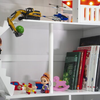 Police v obliki hišice se bodo odlično podale v vsako otroško sobo, hkrati pa bodo služile kot praktičen kos pohištva. Čudovita oblika bo pritegnila pozornost vašega malčka in mu prinesla veliko veselja v njegovem malem kraljestvu! Veliko število polic vam bo omogočilo, da na polico postavite veliko igrač, hkrati pa bo olajšalo vzdrževanje sobe. Nežna oblika se bo zlahka podala v vsako sobo. Polica se lahko uporablja ne le kot navaden kos pohištva, na katerega lahko postavite knjige, temveč tudi kot hišica za punčke. Dimenzije knjižne police so izbrane tako, da malček zlahka doseže tudi najvišje police. Otroku lahko pustite, da sam razporedi stvari po policah, kar bo pozitivno vplivalo na njegovo sposobnost organiziranja prostora in mu bo omogočilo, da odkrije, kako pomemben sta red in njegovo vzdrževanje!