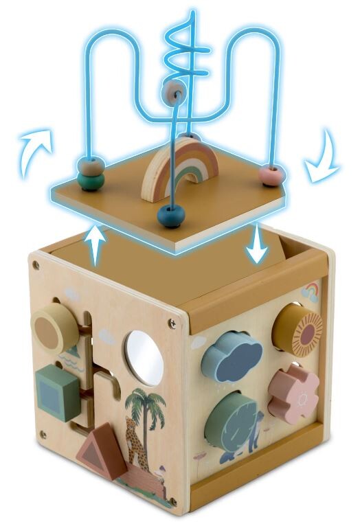 Igrača je zasnovana tako, da se otroci lahko z njo igrajo samostojno, kar spodbuja neodvisnost in staršem omogoča trenutek oddiha.