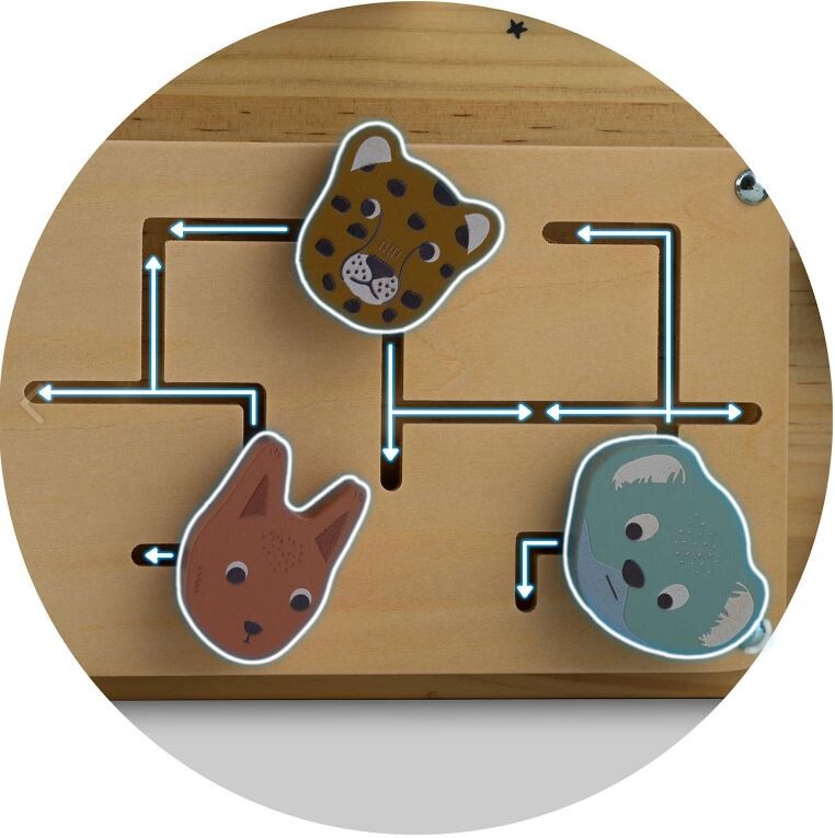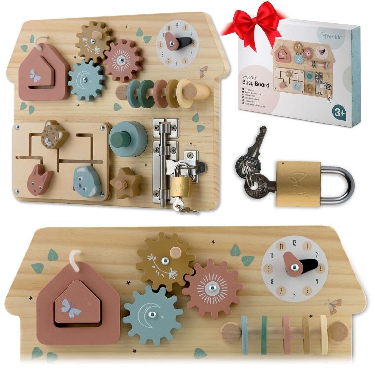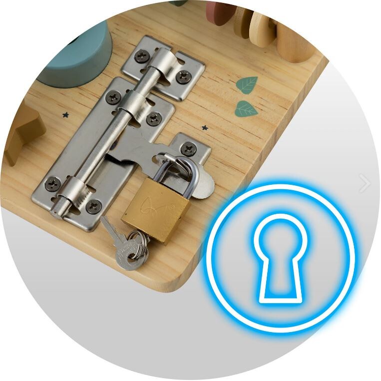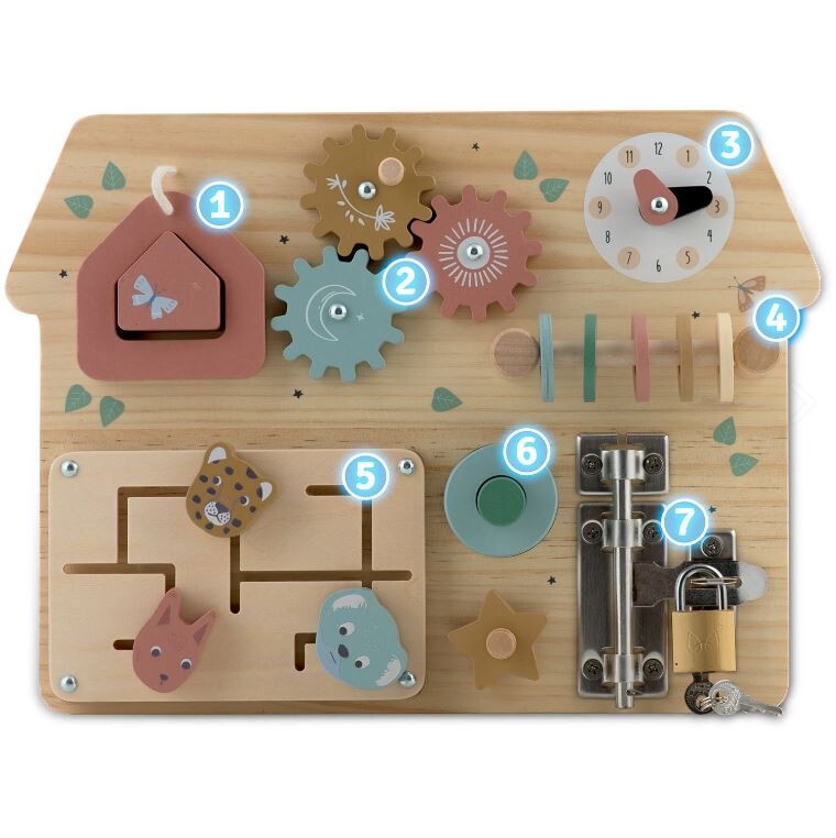 Odlična zabava in hkrati razvoj? Ali obstaja nekaj, kar bi zadovoljilo tako otroka kot starša? To je mogoče zahvaljujoč senzorično-motorični plošči! Presenetljivo preprosta igrača, ki omogoča veliko! Po načelu pedagogike velja, da preprostejša kot je igrača, boljše je za otrokov razvoj. Po tej filozofiji tak izdelek spodbuja dojenčka k ustvarjalnemu izmišljanju novih iger, kar pozitivno vpliva na njegovo ustvarjalnost in domišljijo! Senzorična plošča se tem predpostavkam popolnoma ujema! Da bi pritegnila otrokovo pozornost in ga spodbudila k igri, je plošča oblikovana kot hiša , barve pa so prijetne in harmonične. Plošča ima veliko elementov, namenjenih aktiviranju malčka , od najpreprostejših dejavnosti, kot je premikanje koles, do bolj zapletenih, kot je odpiranje ključavnice s ključem!