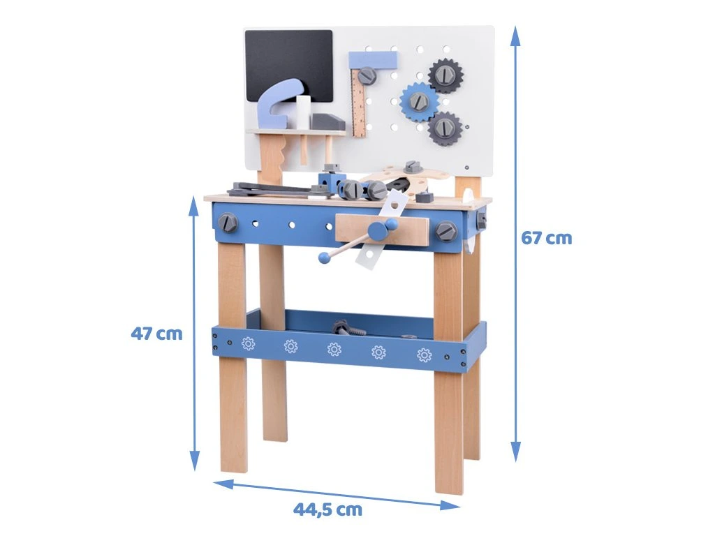 - Kakovostna izdelava: Delovna miza je izdelana iz visokokakovostnega lesa, kar zagotavlja vzdržljivost in varnost med igro.