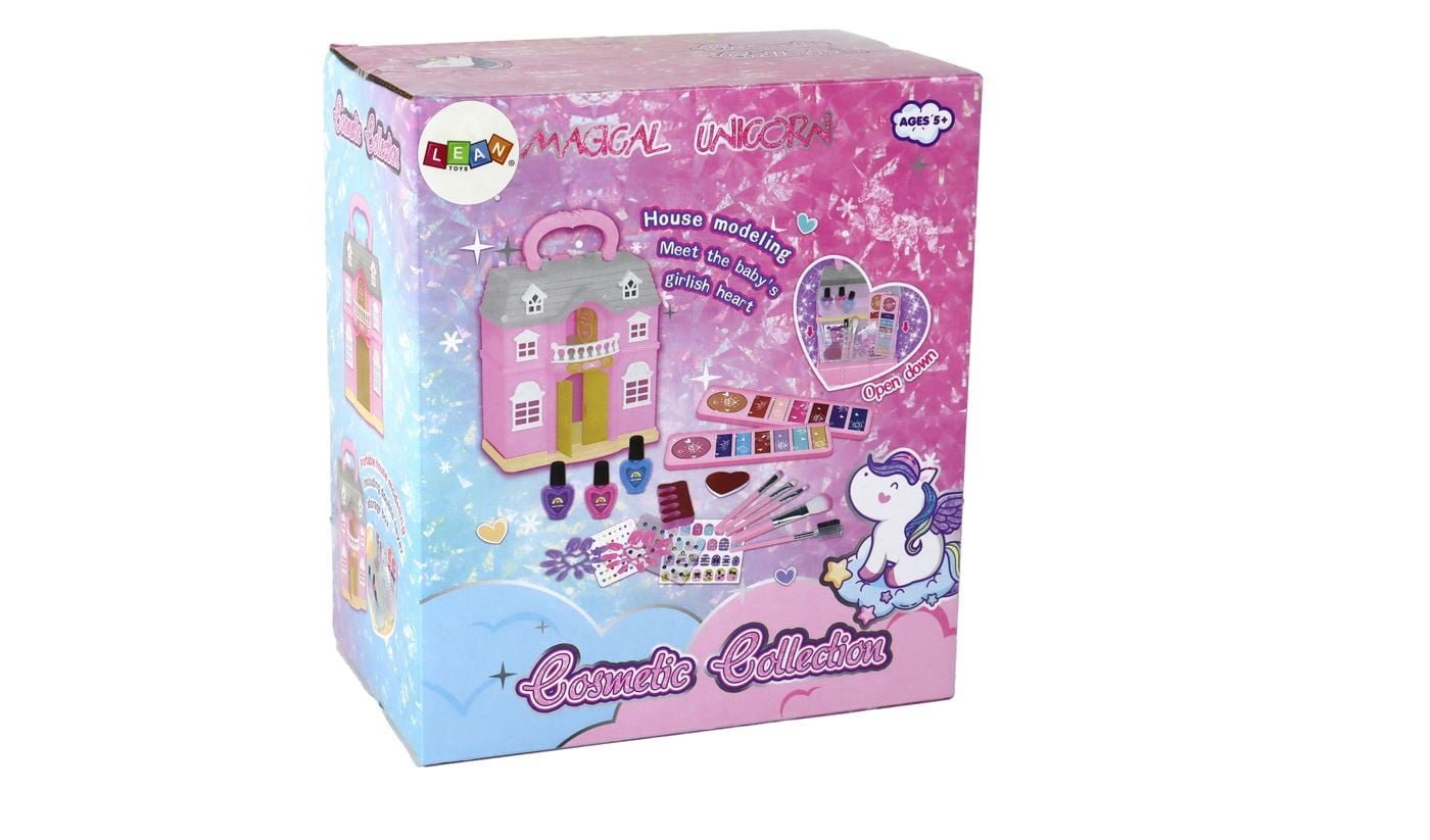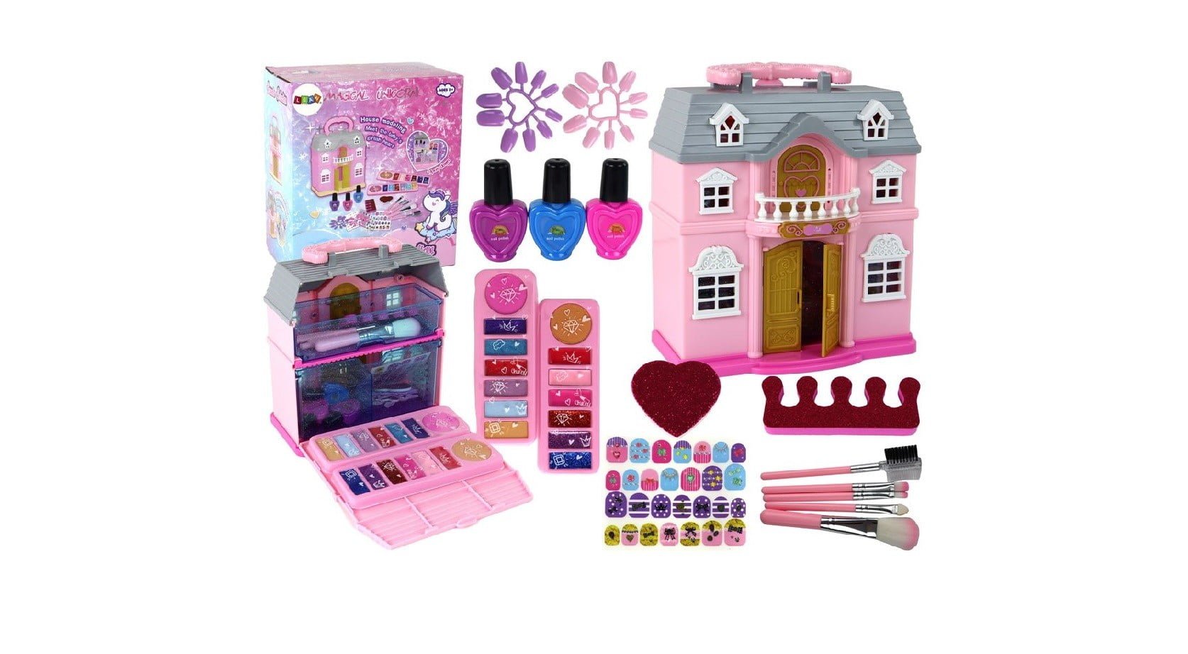 Ta očarljiva, roza lepotna hišica je pravi dragulj za ljubitelje ličenja in lepote. Njen realističen videz in natančno izdelani detajli bodo navdušili vse, ki jo bodo pogledali. Odprtina na hrbtni strani omogoča enostaven dostop do vse vaše kozmetike. V notranjosti se skriva obilica ličil. Dva modra predala sta prava zakladnica. Našli boste puder v prahu, rdečilo za lica in šest različnih senčil za oči. Komplet vsebuje tudi tri glos za ustnice in tri bleščice, ki vam bodo omogočile ustvarjanje presenetljivih videzov ličenja. Za temeljit zaključek imate na voljo pet različnih čopičev, ki vam bodo pomagali doseči popoln učinek. Poleg kozmetike hišica vsebuje tudi potrebne pripomočke za nego nohtov. Tukaj boste našli tri lake za nohte, pilico in dve šabloni za nohte, ki vam bodo pomagali ustvariti fantastične nohte. Za še večjo raznolikost in ustvarjalnost so na voljo različne nalepke. Hišica ni le funkcionalna, ampak je tudi praktična za uporabo. Zahvaljujoč ročaju, ki se nahaja na njenem vrhu, jo lahko vzamete s seboj, kamor koli želite. Izdelana je iz trpežne plastike, kar zagotavlja njeno vzdržljivost. Njene dimenzije so: 17 cm x 18 cm x 10 cm.