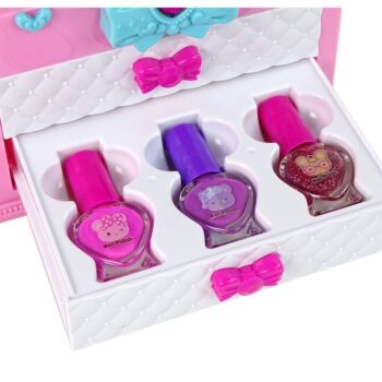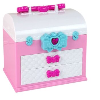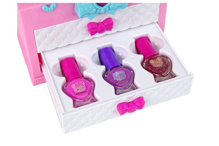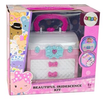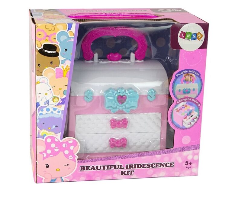 Na voljo je tudi veliko ogledalo, ki malim stilistom omogoča občudovanje njihovega dela. Kovček je praktičen, saj ima ročaj, ki omogoča enostavno premikanje, kamor koli otrok želi vzeti svojo igračo. Njegove dimenzije so: 14 cm x 20 cm x 10 cm, zaradi česar je praktičen in idealen za potovanja. Je odlično darilo za male ljubitelje ličenja in mode, spodbuja razvoj domišljije, ustvarjalnosti in podpira zabavo v skupini!