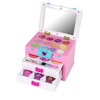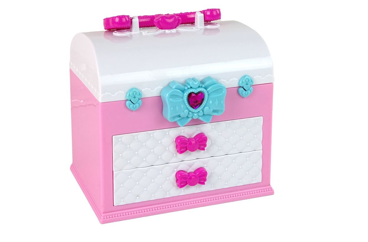 Ta čudovita tristopenjska kozmetična torbica z velikim ogledalom dekleta uvaja v čarobni svet mode in lepote. 🙂
