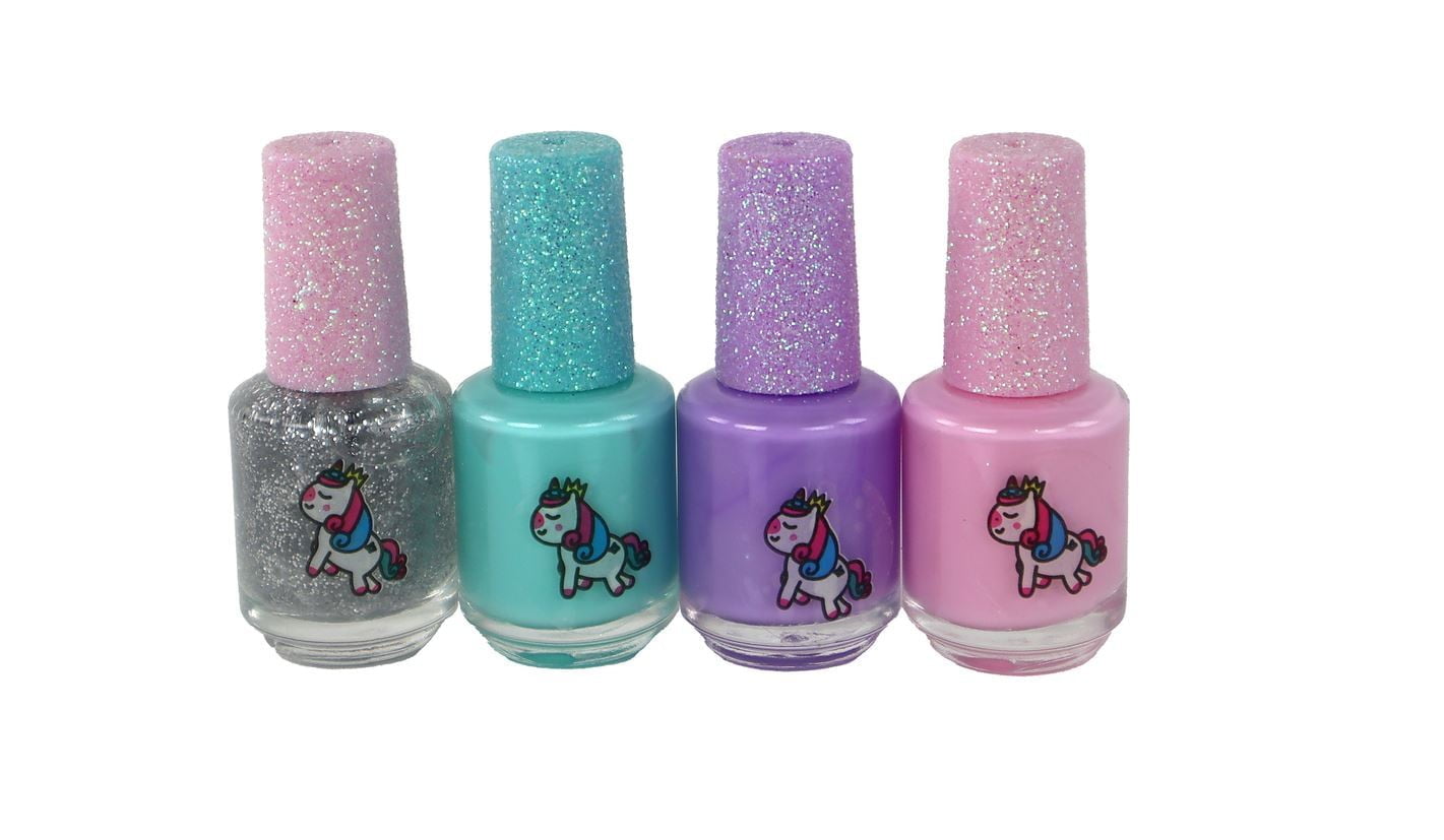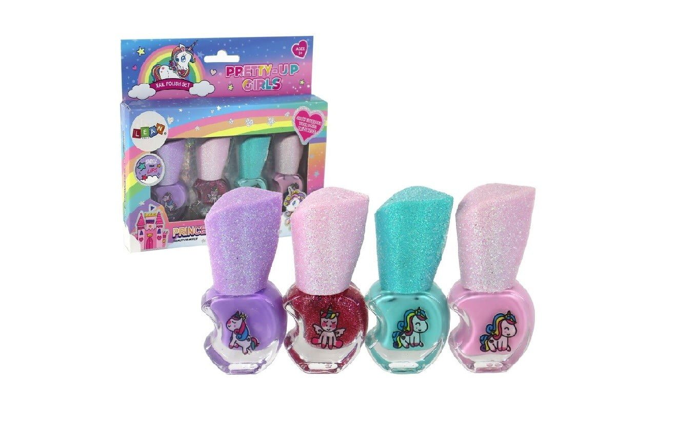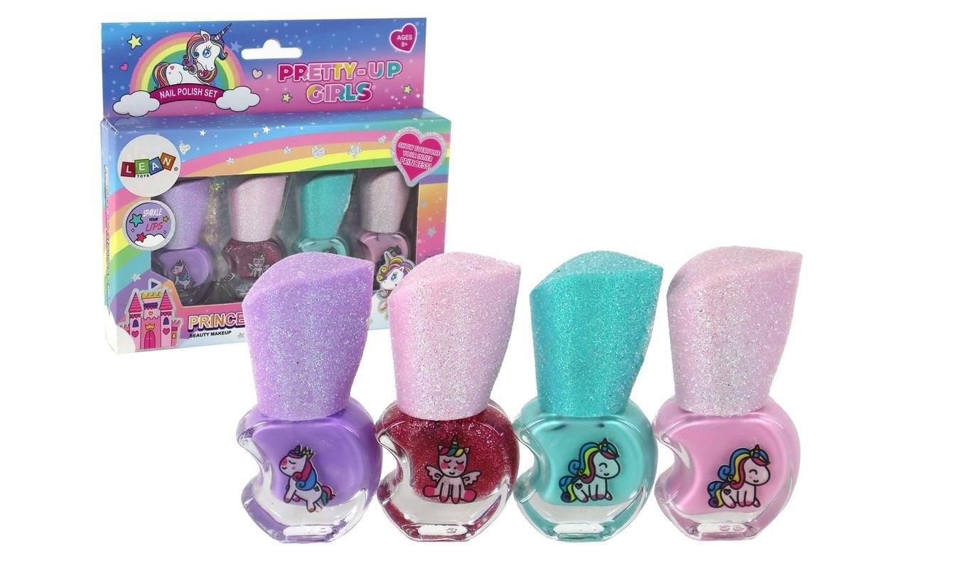 Komplet lakov za nohte Beauty, 4 kosi Podarite svoji mali umetnici nohtov čaroben komplet lakov za nohte, ki jo bo popeljal v svet samorogov. Komplet vsebuje 4 lake za nohte v različnih barvah.