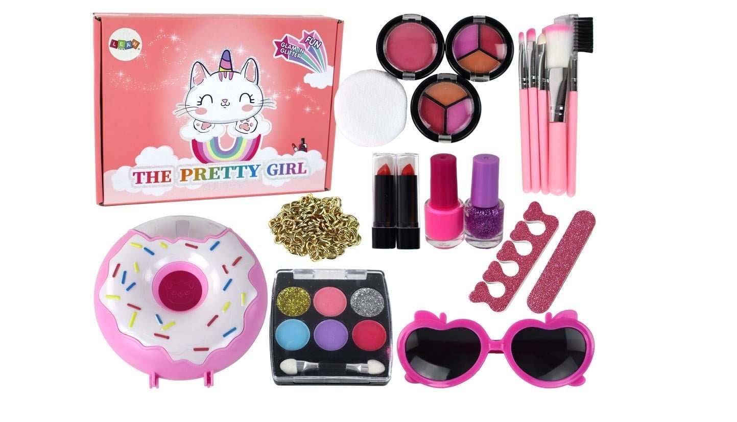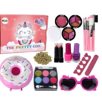 Otroški set ličil Pretty Girl z dodatki bo vsaki deklici narisal nasmeh na obraz, ji omogočil, da izrazi svojo ustvarjalnost in se počuti posebno. Lepotni set ni le igrača, temveč tudi orodje, ki vašemu otroku omogoča, da izrazi svojo domišljijo in ustvarjalnost. Z njim lahko preživite čas s svojo hčerko, sestro ali vnukinjo in jo naučite skrivnosti ličenja in nege nohtov. Ni le zabavno, ampak se tudi uči in skupaj ustvarja lepe spomine. Je popolno darilo za vsako malo damo, ki sanja, da bi bila kot mama in eksperimentirala z ličili. Poskrbite, da se bo vaš otrok počutil posebnega in lepega, hkrati pa poskrbite za njegov razvoj sloga in ustvarjalnosti. Set vsebuje: – 2x rdeče vrtnice – Senčila za oči v odtenkih roza, vijolične, modre ter bleščeče srebrne in zlate – 2x palete za konturiranje – Majhna roza očala – Čopiči za senčila – Ločilo in pilica za nohte – 2x laka za nohte v različnih barvah – Plastični krof z verižico za shranjevanje nakita Velikost embalaže: 24 cm x 18 cm x 5 cm Ima certifikat CE in je skladen s standardom EN71