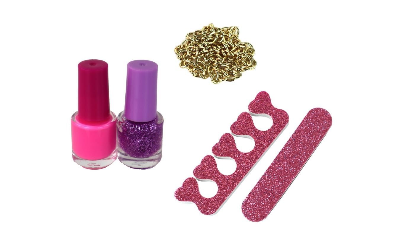 Ta čudovit komplet vsebuje vse, kar majhne princeske potrebujejo za ličenje, nego nohtov in modne dodatke, ki bodo zlahka dopolnili vsako obleko. 🙂