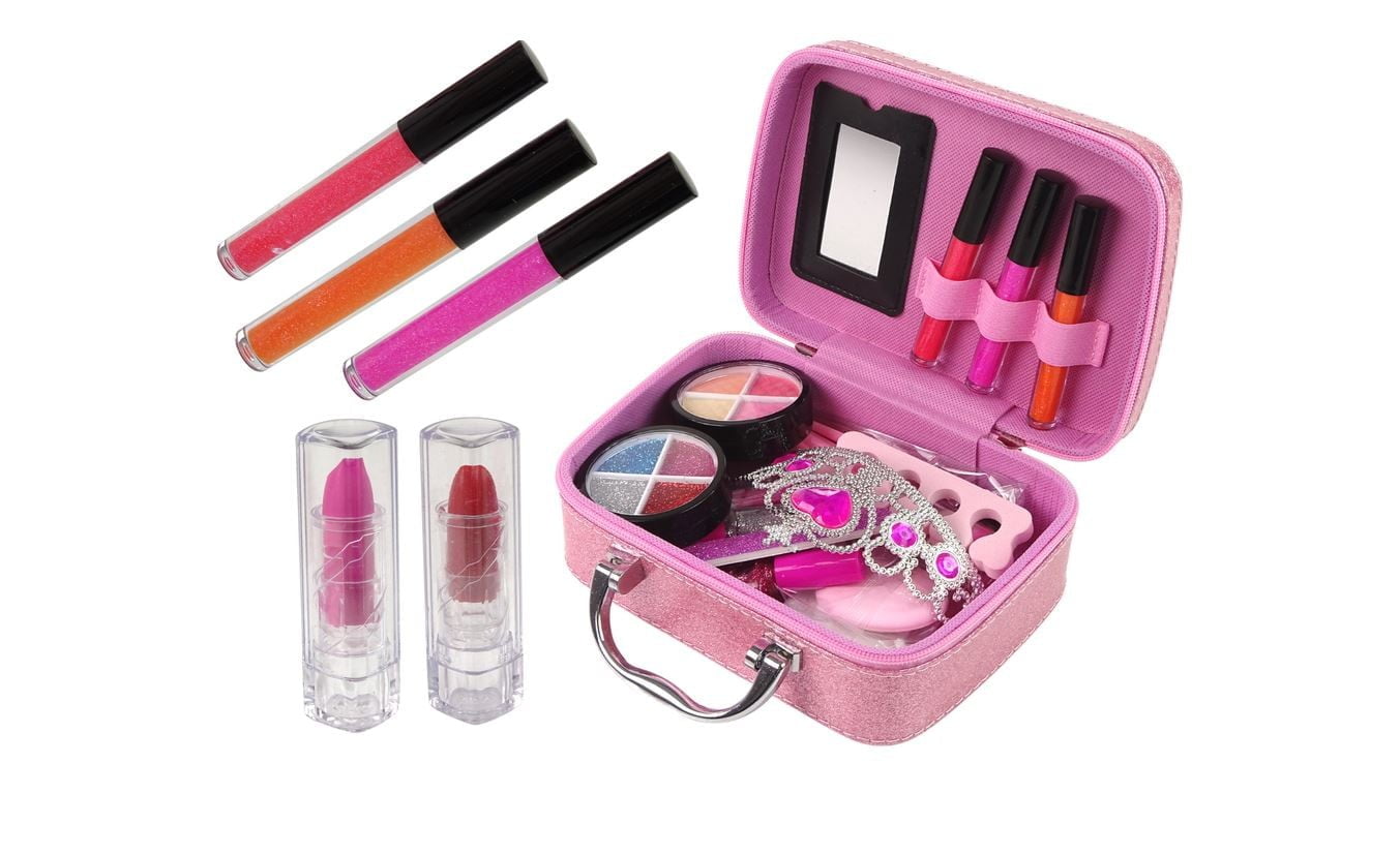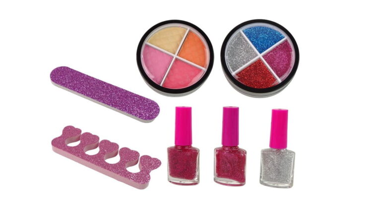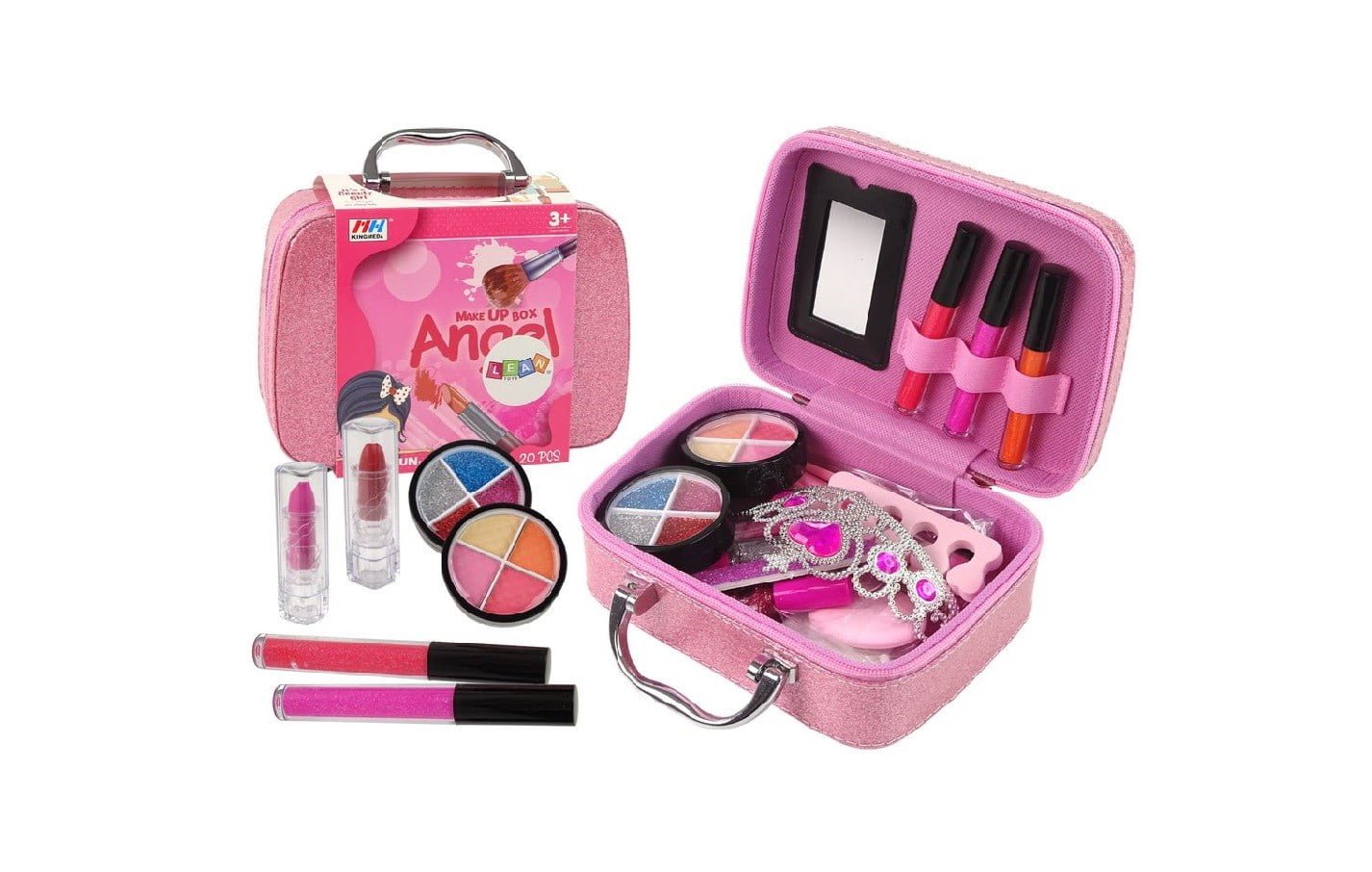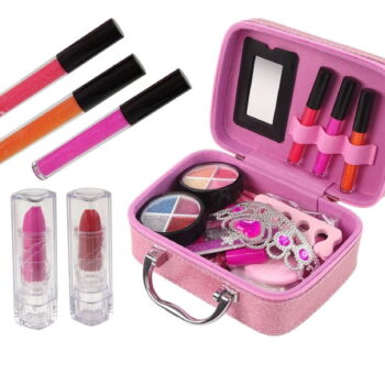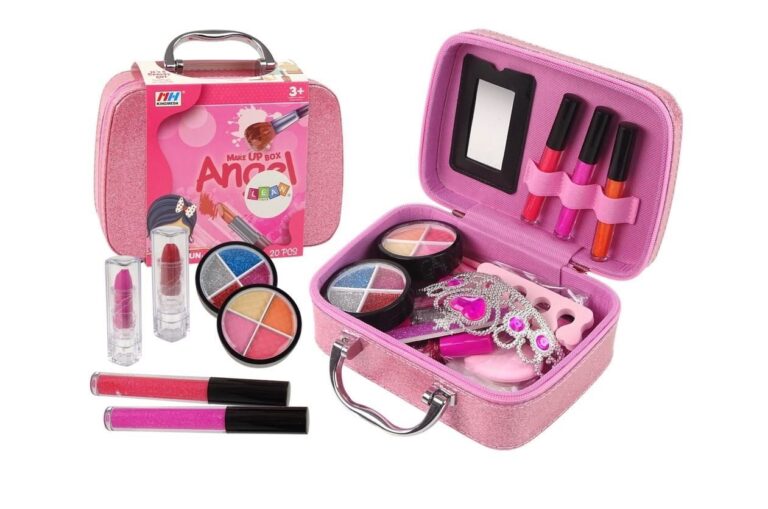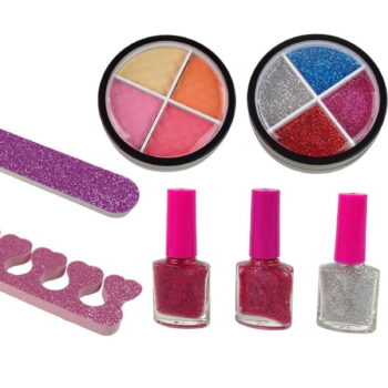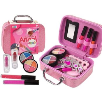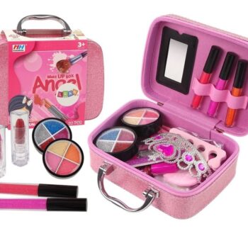 Kozmetika je zasnovana tako, da je varna in neškodljiva za otroke, ter ne vsebuje parabenov. Za odstranitev ličil jih preprosto obrišite s robčkom ali vatno blazinico, namočeno v milo in toplo vodo. Komplet vsebuje: – etui z ogledalom – tiaro – 2 šminki: roza, rdeča – 3 bleščeči laki za nohte: 2 odtenka roza in srebrne – 3 glos za ustnice: roza, rdeč, oranžen – okroglo paleto s 4 bleščečimi senčili za oči – okroglo paleto s 4 rdečili za lica – čopiče za ličenje – svetleče ločilnike za prste – pilo za nohte