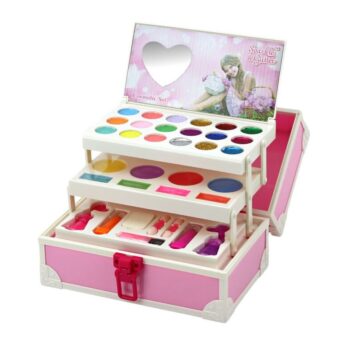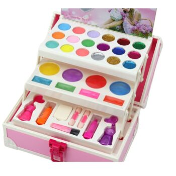Lepotni set v elegantni škatlici je čarobni “laboratorij” za male ljubiteljice ličenja. 🙂 Sestavljen je iz kar 9 senčil za oči in 9 bleščic, ki ponujajo neskončne možnosti za ustvarjanje vpadljivega ličenja. Poleg tega so tu še pisani glos za ustnice, dva laka za nohte, dve šminki in čopiči – vse, kar potrebujete za popoln videz.