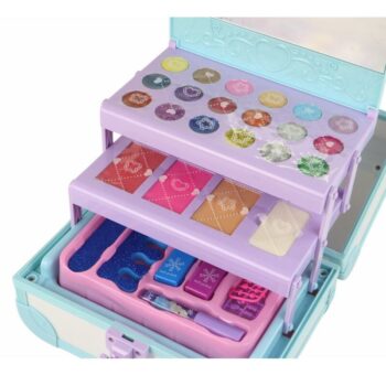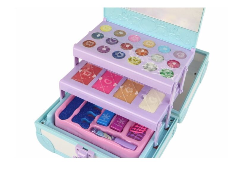 Škatla ni le praktična, ampak tudi estetska, saj vsebuje elegantno ogledalo. To je popoln komplet za vsako princeso, ki želi izraziti svojo ustvarjalnost in lepoto.
