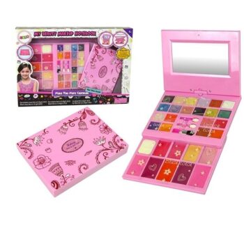 11 Vsaka deklica se želi počutiti kot njena mama, na neki točki se začne zanimati za videz, ličenje in modo, in takrat je pravi čas za nakup naše Beauty Palette – kompleta kozmetike, skritega in organiziranega v čudoviti roza paleti , ki se zapira z magnetom. 6 Zložljiva paleta ličil vsebuje senčila za oči, rdečila za lica, bleščila za ustnice in šminke. Na pokrovu je veliko ogledalo, da si lahko dekle natančno nanese ličila. Ogledalo se vrti in ga je mogoče obrniti na drugo stran. 8 Kozmetika je zasnovana tako, da je varna in neškodljiva, brez parabenov. Za odstranitev ličil preprosto obrišite s robčkom ali vatno blazinico in toplo vodo.