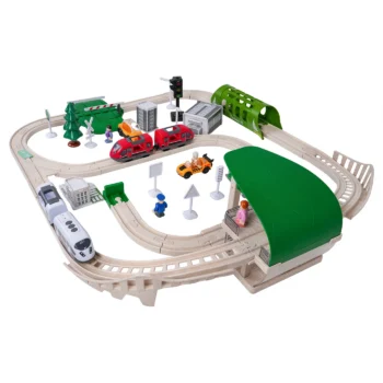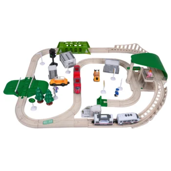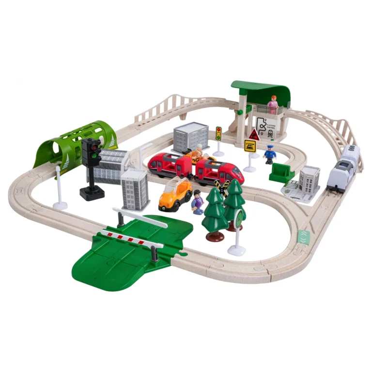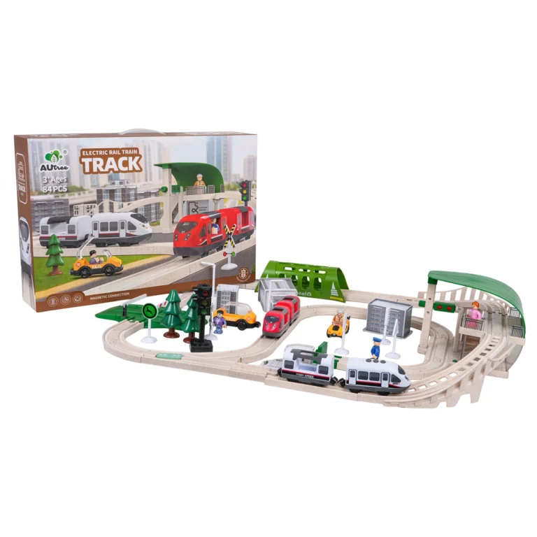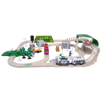 | Interaktivni vlakec za otroke, stare od treh let naprej. Komplet je izdelan iz varnih in trpežnih materialov, kar zagotavlja zanesljivost in dolgo življenjsko dobo. Komplet vključuje tire za dva vlaka, postajno stavbo, predor in železniško zapornico. Vključuje tudi dve vozili, mestne stavbe, prometne znake in figure. Ta komplet ponuja veliko možnosti za ustvarjalno igro. Predor napajajo 3 baterije AG13 (priložene). Vlak, ki pelje skozenj, aktivira zvoke vlaka in pisane utripajoče luči. Železniška postaja se napaja s 3 baterijami AG3 (priložene), ima osvetlitev ozadja in proizvaja zvoke vlaka. Semaforji se napajajo s 3 baterijami AG3 (priložene), proizvajajo zvoke, ki spreminjajo svetlobo, in imajo svetlobne učinke. Bel vlak se napaja z 2 baterijama AAA 1,5 V (nista priloženi), se premika naprej in nazaj, proizvaja zvoke vožnje in ima osvetljene žaromete. Značilnosti: – za otroke od treh let starosti, – izdelan iz trpežnih in varnih materialov, – ponuja številne možnosti za ustvarjalno igro, – zvočni učinki: zvoki vlaka, semaforji, – svetlobni učinki: luči vlaka, utripajoče luči v predoru, osvetljena postaja, osvetljeni semaforji. | |