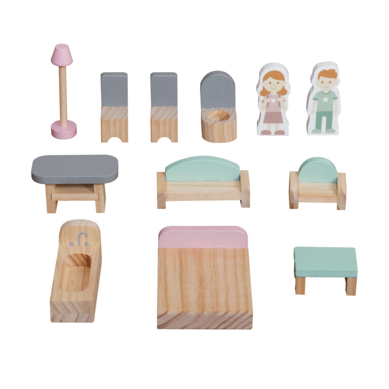 - Kakovostni materiali: Hiša je izdelana iz kombinacije lesa in MDF plošče, zato je stabilna in dolgo obstojna.