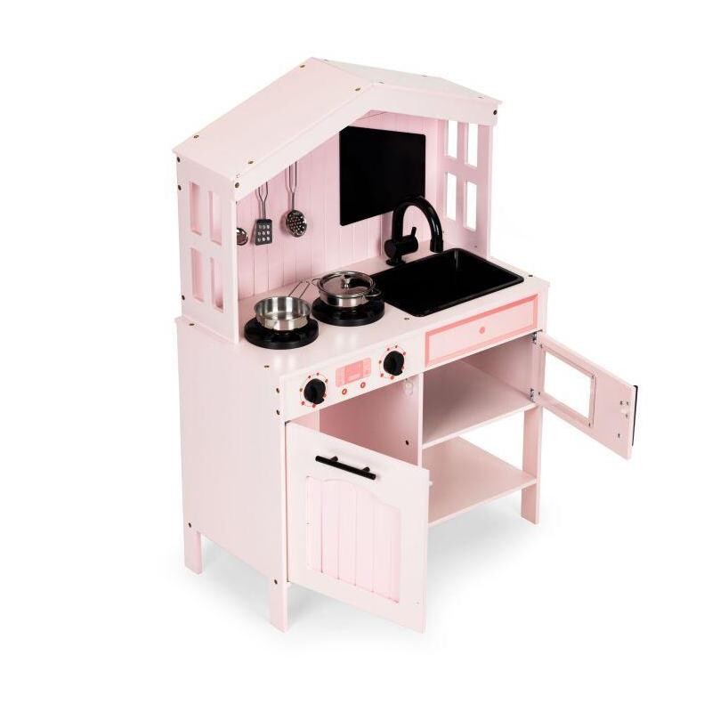 Otroci imajo radi igrače, v katerih se pri opravljanju vsakodnevnih opravil počutijo kot odrasli, s posnemanjem vedenja pa se hitro učijo in pridobivajo znanje o svetu okoli sebe. Nedvomno ta oblika igre pozitivno vpliva na otrokov razvoj, razvija njegovo domišljijo, ustvarjalnost in ročne spretnosti. Zahvaljujoč ECOTOYS se bodo otroci počutili kot v pravi kuhinji, zabavi pri pripravi obrokov za vso družino pa ne bo konca. Kuhinja je izdelana iz trpežnih desk in lesenih elementov, kar ji daje pristen in edinstven videz, brez ostrih robov, zaradi česar je varna za otroke. Čudovite barve in zvesta reprodukcija številnih detajlov kuhinje poskrbijo, da bo v otroški sobi videti odlično in vsakega otroka privabijo k dolgim uram zabave.