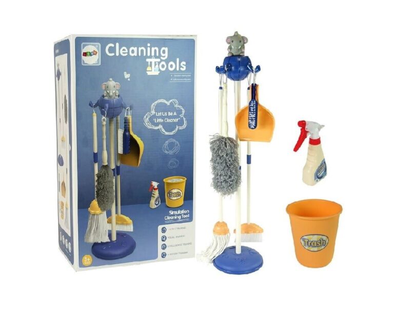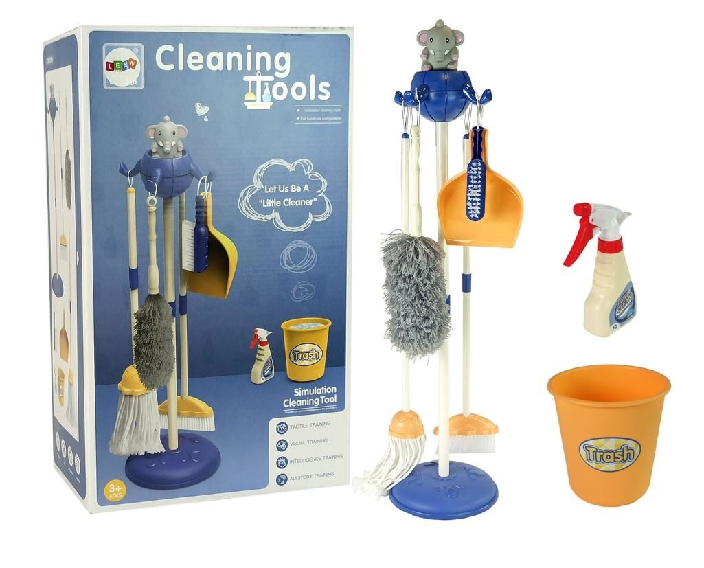 Komplet za čiščenje za vsakega malčka, ki rad pomaga staršem pri vsakodnevnih opravilih, kot je čiščenje hiše. Otroški dizajn in barve kompleta bodo stojalo za dodatke naredile odlično pomoč pri učenju vašega otroka, da skrbi za čistočo v svoji sobi. Zahvaljujoč njemu lahko preprosto združite prijetno zabavo z opravljanjem nalog, kar bo v prihodnosti zagotovo obrodilo sadove. Velika prednost kompleta so številni dodatki, ki so zvesta kopija izdelkov v polni velikosti, zaradi česar se lahko otrok počuti samostojno in zrelo, saj čisti skupaj z drugimi člani gospodinjstva. Igrača je izdelana iz močnega in trpežnega materiala, ki zagotavlja dolgo življenjsko dobo in udobje uporabe. Ima estetski zaključek, ki bo v kombinaciji z barvitimi barvami in poenostavljenimi oblikami zagotovil odlično in predvsem varno zabavo za vsakega otroka. Raznolikost elementov v kompletu bo otroku pomagala razumeti, kako delujejo različni predmeti – krpa ali krtača. Vsi elementi so dimenzionirani tako, da ustrezajo otrokovi višini, zato njihova uporaba za otroke ne bo problem. Pripomočki za čiščenje so pakirani v pisani kartonski škatli, zaradi česar so odlično darilo za otroka.