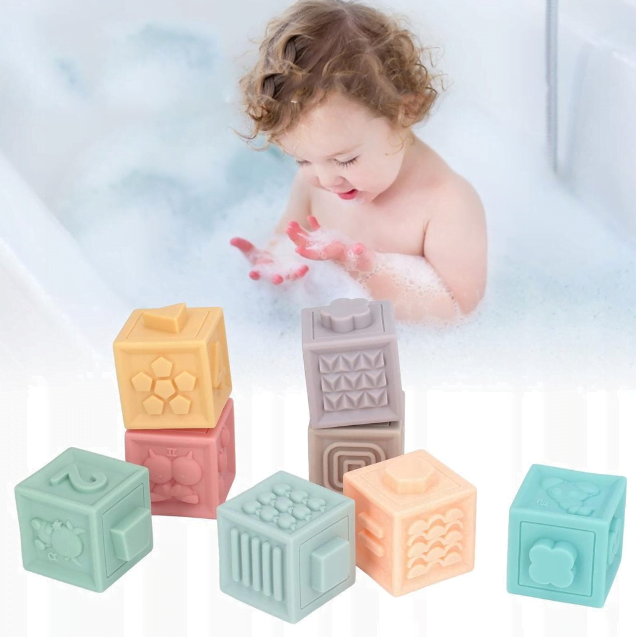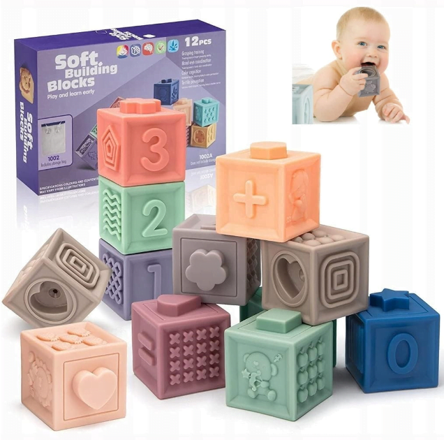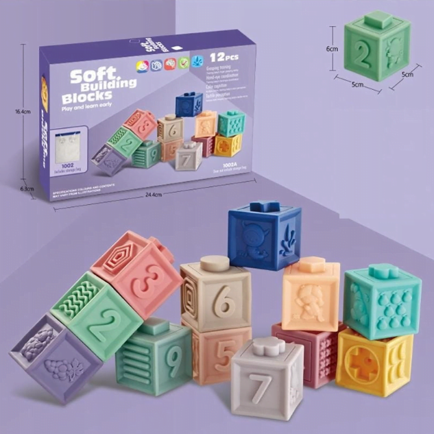 Mehke senzorične kocke za otroke, komplet 12 kosov Zelo poučen izdelek za otroke Starost: od 6 mesecev Število kock: 12 kosov Velikost kock: 5 x 5 x 6 cm Vsaka od kock ima konveksne številke, geometrijske like, oblike, matematične znake, živali, sadje in slike. To vpliva na razvoj čutov in dotika. Kocke je mogoče kombinirati med seboj. Zaradi svoje konstrukcije so odlične kot grizala za dojenčke. Ob pritisku – cvilijo. Z njimi se lahko igrate v vodi. Razvijajo otrokovo vidno-slušno koordinacijo in motorične sposobnosti. Značilnosti: Kocke so gumijaste, z njimi se lahko igrate v vodi med kopanjem. Različne teksture in barve – razvijajo otrokove čute. Konveksne oblike – omogočajo postavitev in povezovanje kock. Elementi, ki cvilijo – ob stiskanju ustvarjajo zvoke. Poučna igrača, ki podpira otrokov razvoj, tako materialni kot mehanski. Izdelek je pakiran v lepi, pisani kartonski škatli.