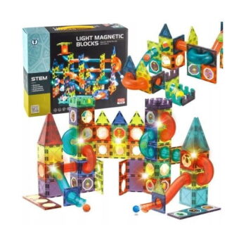 Predorni bloki so izjemno vsestranska igrača, ta komplet 110 elementov pa zagotavlja ure zabave. 🙂 Prijetne barve in nalepke z raznoliko grafiko bodo zagotovo spodbudile vašega malčka k igri. Odlično za razvoj ročnih spretnosti, fine motorike in natančnosti prstov. Načrtovanje konstrukcij spodbuja prostorsko domišljijo in uči logično razmišljanje, medtem ko opazovanje kroglic, ki se premikajo po zgrajeni poti, spodbuja vizualno zaznavanje in razvija opazovalne sposobnosti. Komplet je odličen za skupno igro! Vsi elementi so izdelani iz trpežnega materiala, kar vam bo zagotovilo, da boste v kompletu uživali dolgo časa.