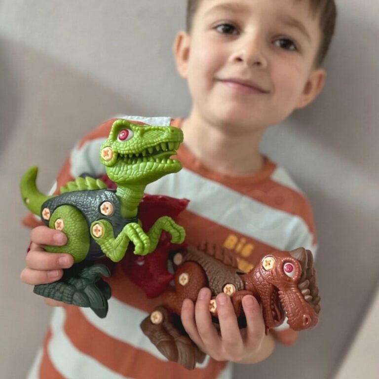 Komplet dinozavrov 5 v 1 za vse male navdušence, ki radi gradijo ali preprosto obožujejo Jurski svet. Malčki sami sestavijo dinozavre z izvijačem in na ta način razvijajo fino motoriko, natančne gibe in domišljijo.