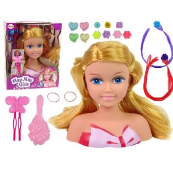 Glava punčke ne bo vašemu otroku prinesla le veliko zabave, temveč bo razvijala tudi njegovo domišljijo, ustvarjalnost in čut za estetiko. Glava punčke, zasnovana za elegantno oblikovanje, je izdelana z veliko skrbnostjo, kar je očitno že pri pogledu na najmanjše podrobnosti. Očarljiv obraz punčke je prekrit z nežnim, dekliškim ličilom. Glavo ima prekrito z gostimi svetlimi lasmi. Barvite dodatke, ki so priloženi kompletu, lahko namestite v lase punčke in otroka.