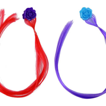 – glava punčke – sponke – krtača – dva pramena rdeče in vijolične barve – 3 lasnice