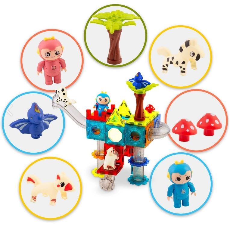 Mega priljubljene magnetne kocke, ki združujejo zabavo in učenje. Komplet 107 kosov z živalmi in dinozavri. Vsi kosi imajo na robovih močne magnete, ki se povezujejo z drugimi deli kompleta, in so združljivi s ploščicami Connetix.