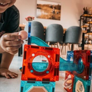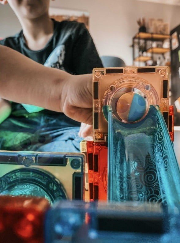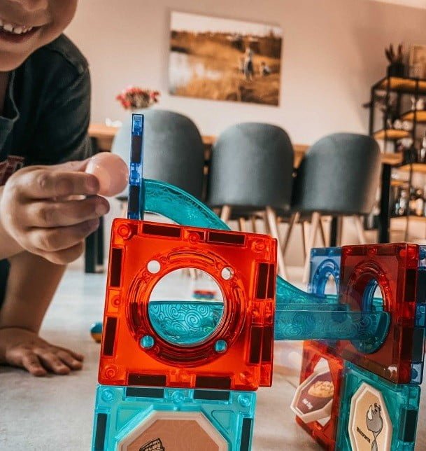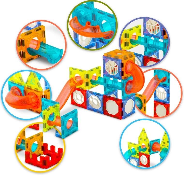 Spajanje magnetnih blokova savršeno razvija ručne vještine, finu motoriku i preciznost prstiju. Planiranje konstrukcija potiče prostornu imaginaciju i uči logičnom razmišljanju, dok promatranje loptica koje se kreću izgrađenom stazom potiče vizualnu percepciju i razvija sposobnost promatranja.