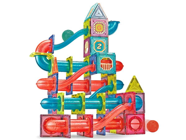 Izjemno priljubljene magnetne kocke, ki združujejo zabavo in učenje, ZDAJ Z UJEMAJOČO ŠKATLO ZA SHRANJEVANJE. Komplet s 145 kosi vsebuje magnetne kocke in kroglične steze, kar zagotavlja ure zabave in nešteto kombinacij gradnje. Vsi kosi imajo na robovih močne magnete, ki se povezujejo z drugimi deli kompleta, in so združljivi s ploščicami Connetix.
