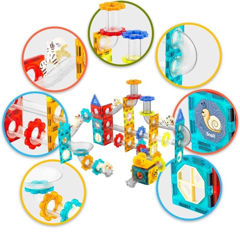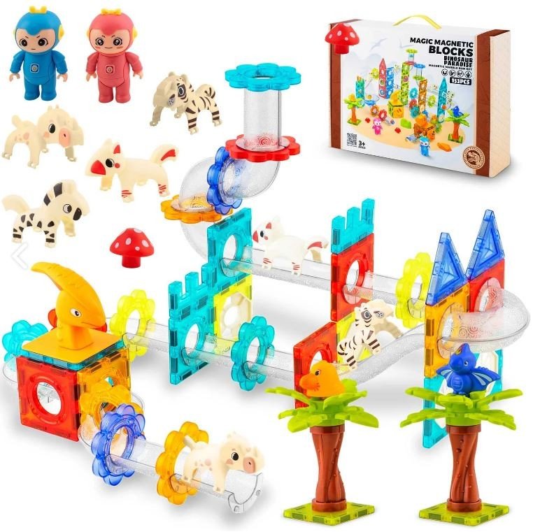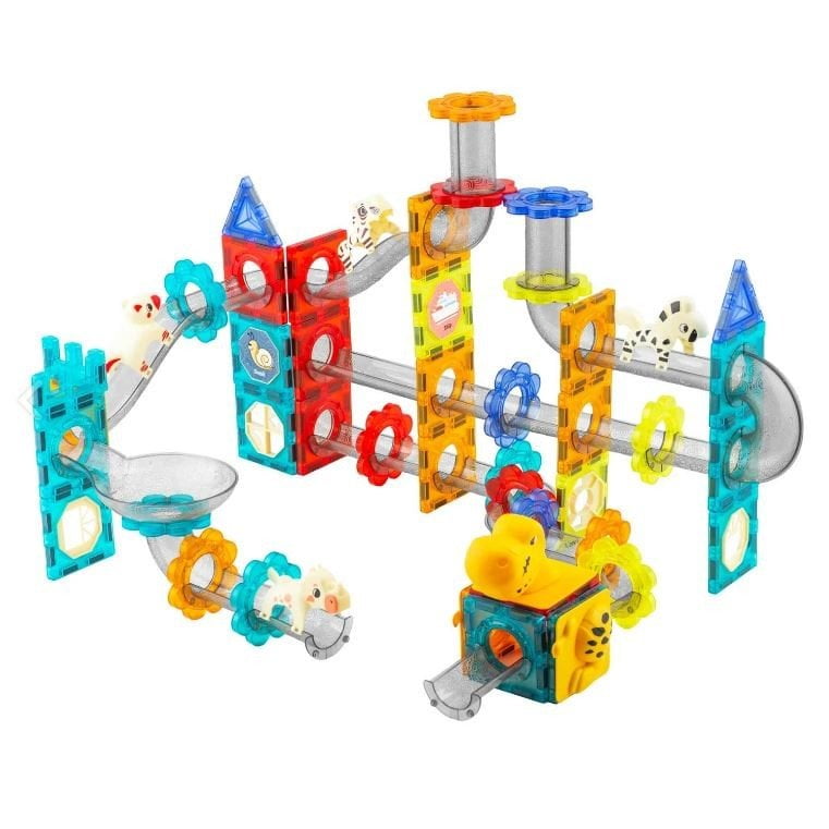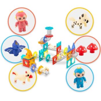 Vsebina kompleta: Magnetni bloki Žogice Predori Živali in dinozavri Punčke x2 Drevesa, gobe Nalepke Navodila Izdelek je pakiran v kartonski škatli.