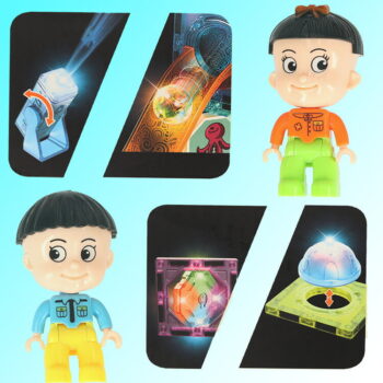 Žogice x12 Svetleči magnetni bloki x14 Kvadratni magnetni bloki x60 Magnetni trikotni bloki x4 Magnetni bloki v obliki črke “E” x4 Navadni bloki različnih oblik x106 Figurice x2 Nalepke z različnimi slikami