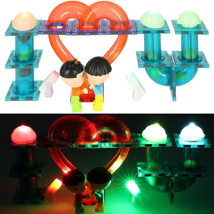 Magnetne kocke so izjemno vsestranska igrača, ta komplet 202 elementov pa vsebuje veliko svetlečih elementov, vključno z žogicami, ki se ob premikanju začnejo svetiti. 🙂 Zahvaljujoč njim kroglice po sestavljanju proge ustvarijo pravo svetlobno predstavo! Lučke in reflektorji vam bodo omogočili, da konstrukcijo dodatno osvetlite, da bo videti še bolj spektakularna. Prijetne barve in nalepke z raznoliko grafiko bodo vašega malčka zagotovo spodbudile k igri. Povezovanje magnetnih kock odlično razvija ročne spretnosti, fino motoriko in natančnost prstov. Načrtovanje konstrukcij spodbuja prostorsko domišljijo in uči logično razmišljanje, medtem ko opazovanje kroglic, ki se premikajo po sestavljani progi, spodbuja vizualno zaznavanje in razvija opazovalne sposobnosti. Komplet je kot nalašč za skupno igro! Vsi elementi so izdelani iz trpežnega materiala, kar vam bo zagotovilo, da boste v kompletu uživali dolgo časa.